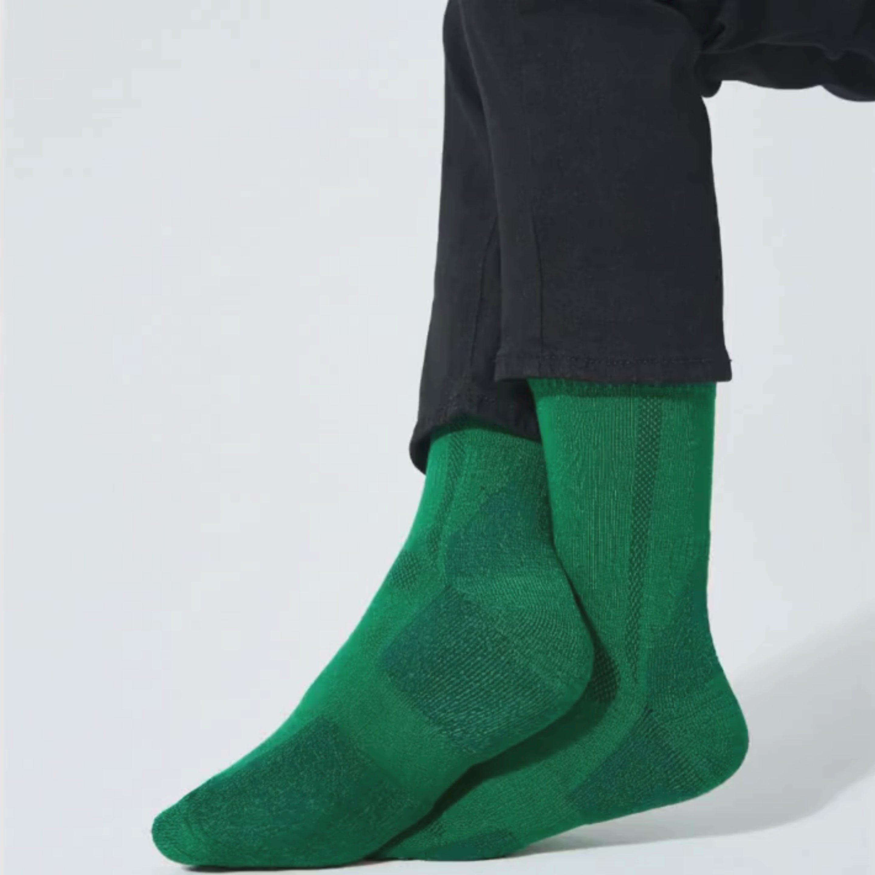 Bamboo’s inherent antibacterial properties reduce odor and inhibit bacterial growth, keeping socks fresher and more hygienic between washes.