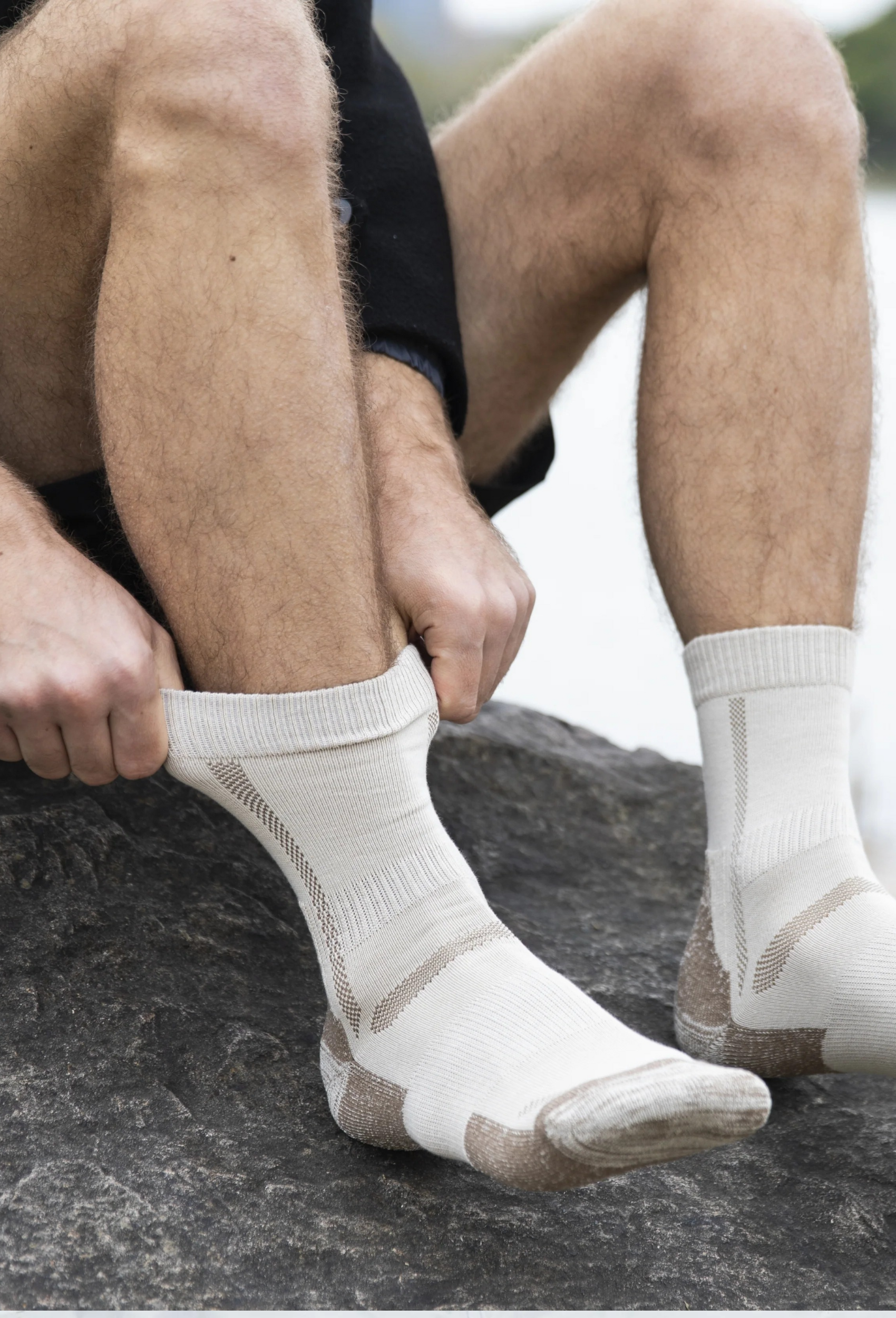 Experience ultimate comfort on your toughest trails with our premium bamboo hiking socks. Engineered with a fully seamless construction to eliminate blisters, these durable socks feature strategic cushioning in the sole and toe areas for all-day support. The revolutionary temperature-regulating bamboo fabric keeps feet cool in summer and warm in winter, making these socks your essential companion for every adventure. Why settle for less when your feet deserve the best?